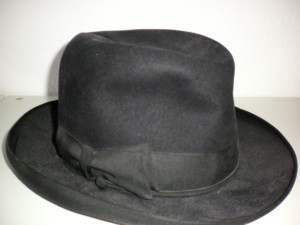 Once there, the trick is how to get in character. Royce Leville has a black hat. With this hat on, Royce is writing.