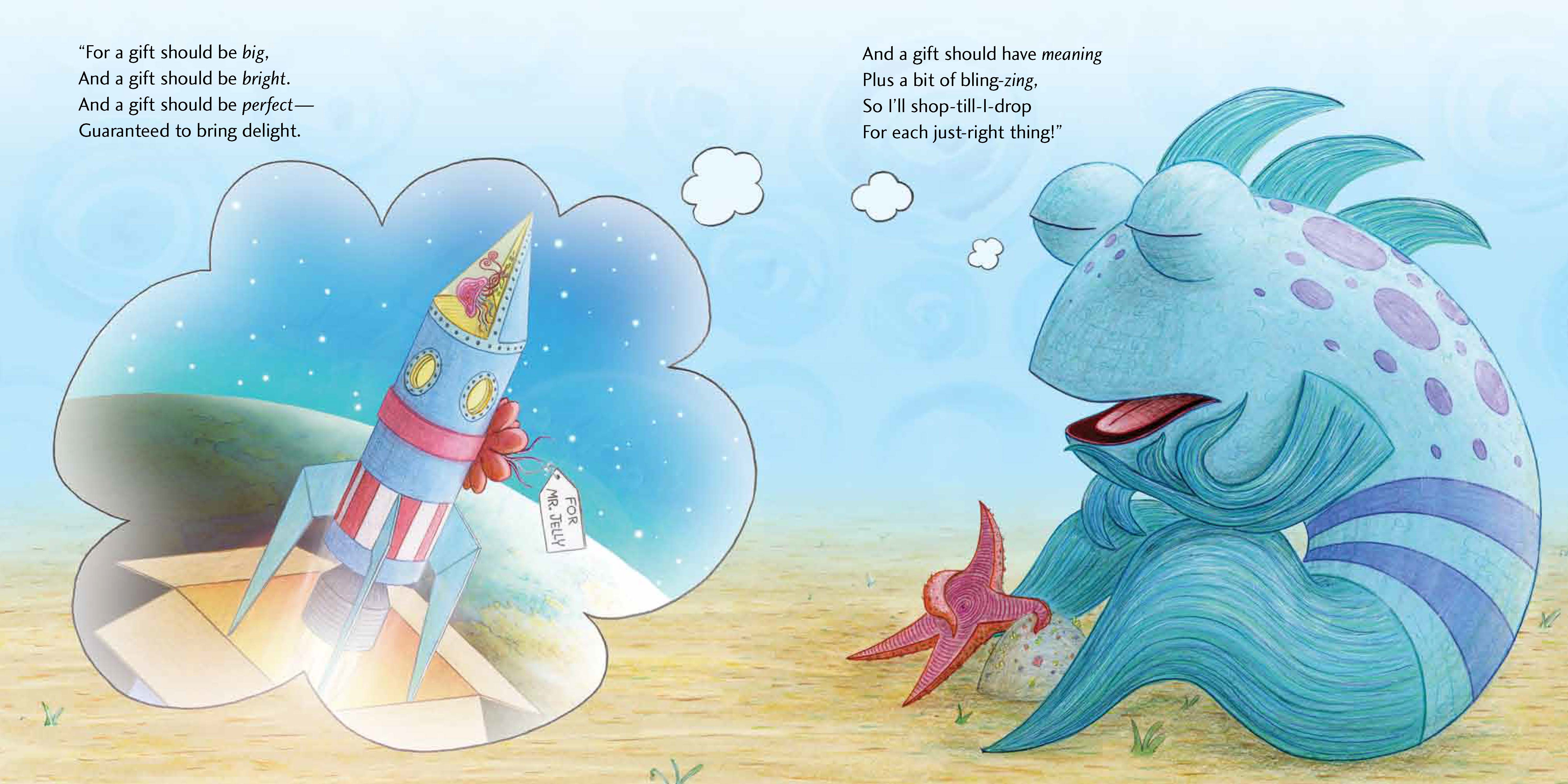 When Mr. Fish—with his signature Pout-Pout Fish frown—comes up empty-handed, Miss Shimmer intervenes with a plan to make homemade gifts. He soon learns that it’s not about busting the budget or gifting the season’s hottest item, but giving from the heart. Together they experience the joy that comes from giving and sharing—the merriest gifts of all.