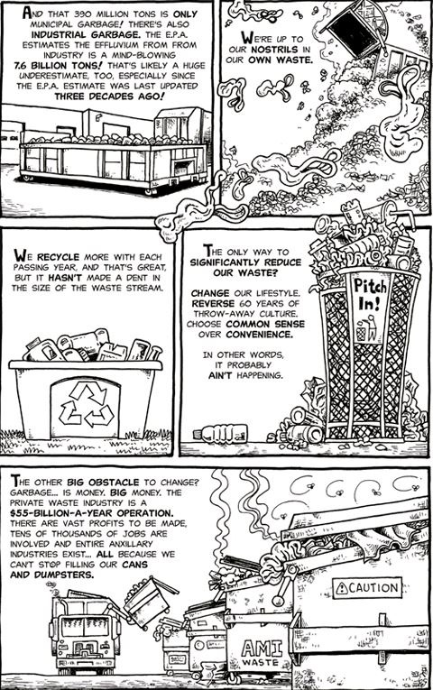 Discussion Questions: Trashed’s structure is unique in its mix of fiction and fact. Why do you think the author chose to mix the two instead of sticking with only one genre? Also, why do you think he chose to not make this a memoir based on his own experiences and instead make a fictional narrative?; JB’s tone throughout the text is primarily negative seeming annoyed, bitter, or hopeless. Some examples of this can be found on pages 10-11, 37, and 202. How would you describe JB’s tone? What words were specifically used throughout the text to set the tone? Why do you think the author chose to write JB’s character this way?; What claim do you think Backderf is making by including all of the factual evidence about municipal waste? How is his claim developed over time? How did he use rhetoric throughout the text to advance his point of view?; Looking at the information Backderf shared from the Columbia University and EPA reports, how did the author choose the order in which he revealed information?; Was there any factual information shared in Trashed that surprised you? Why did it surprise you, and what does it make you reflect on?