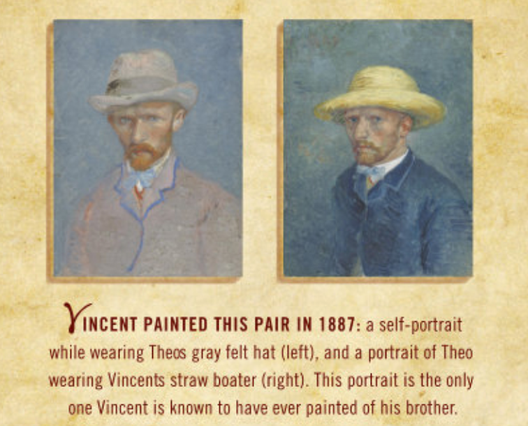 VINCENT AND THEO VAN GOGH look a lot alike: They both have red hair, though Vincent’s is redder, Theo’s more reddish blond. Vincent has freckles; Theo does not. They are both medium height—around five feet seven—but Vincent is broader, bigger; Theo slighter, thinner. They have pale blue eyes that sometimes darken to greenish blue. They are definitely brothers.