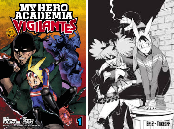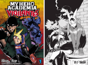 - My Hero Academia Vigilantes by Hideyuki Furuhashi: This spin-off series to My Hero Academia is actually really good! Manga readers that are looking for a cool series would love this. Our story starts with a young man named Koichi, who has a weak quirk. He learns about vigilantes, heroes that fight without licenses, and decides that even with his quirk he wants to become a hero. He meets a man named “knuckleduster” who doesn’t even have a quirk, but is acting as a vigilante, and begins to fight crime.