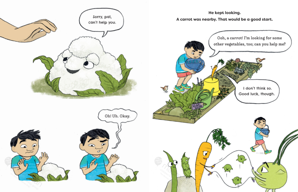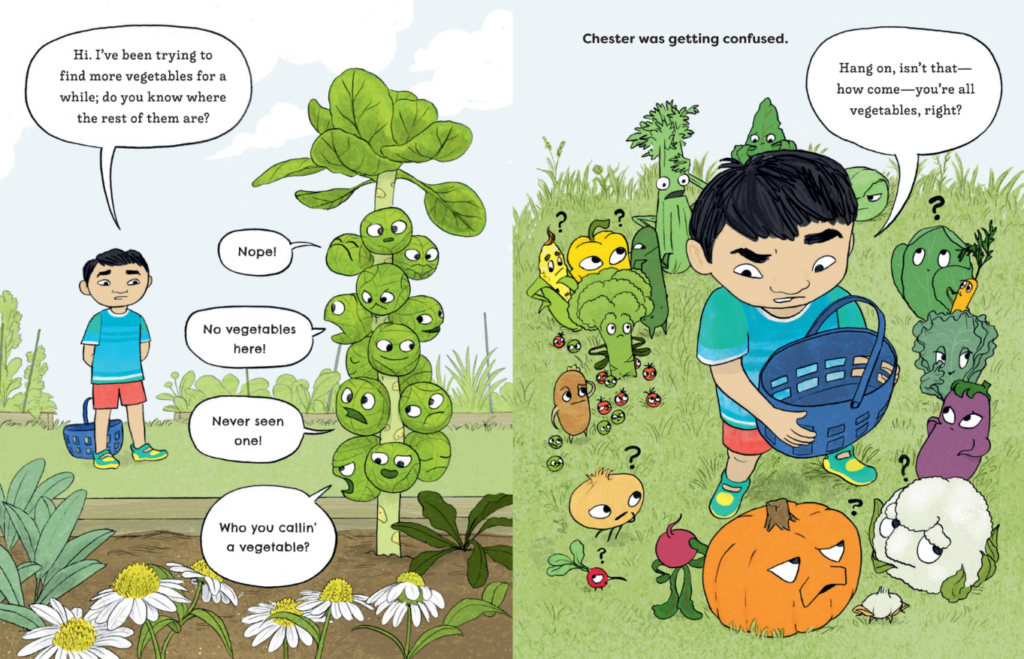 Chester plans to have a salad for lunch, but in order to do that, he’ll need vegetables. So, off he goes to the community garden, except he quickly learns that he won’t be dressing a salad anytime soon. Instead, the vegetables start dressing him down. According to them, “vegetables” don’t exist!