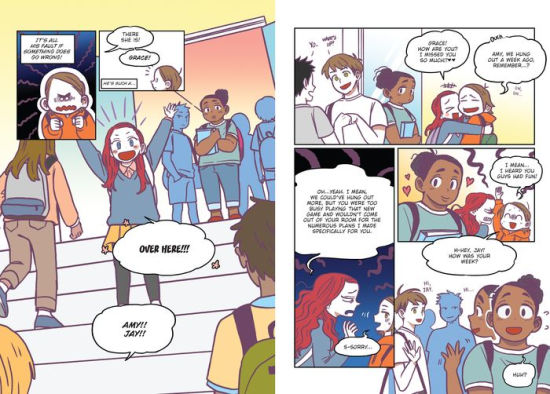 This is a graphic novel that will find love with fans of Raina Telgemeier, Svetlana Chmakova, and Terri Libenson, so it is definitely worth adding to your collection. However, I do want to share that there was one real part that I hope kids reflect on instead of do what Grace does: When she stops being friends with Amy, her new “friend” starts ohysiclly and mentally bullying her, and Grace does nothing. I think Jeong did a good job showing why she did nothing, but I also hope that watching this bullying will make readers want to stand up to a bully the next time they see one!