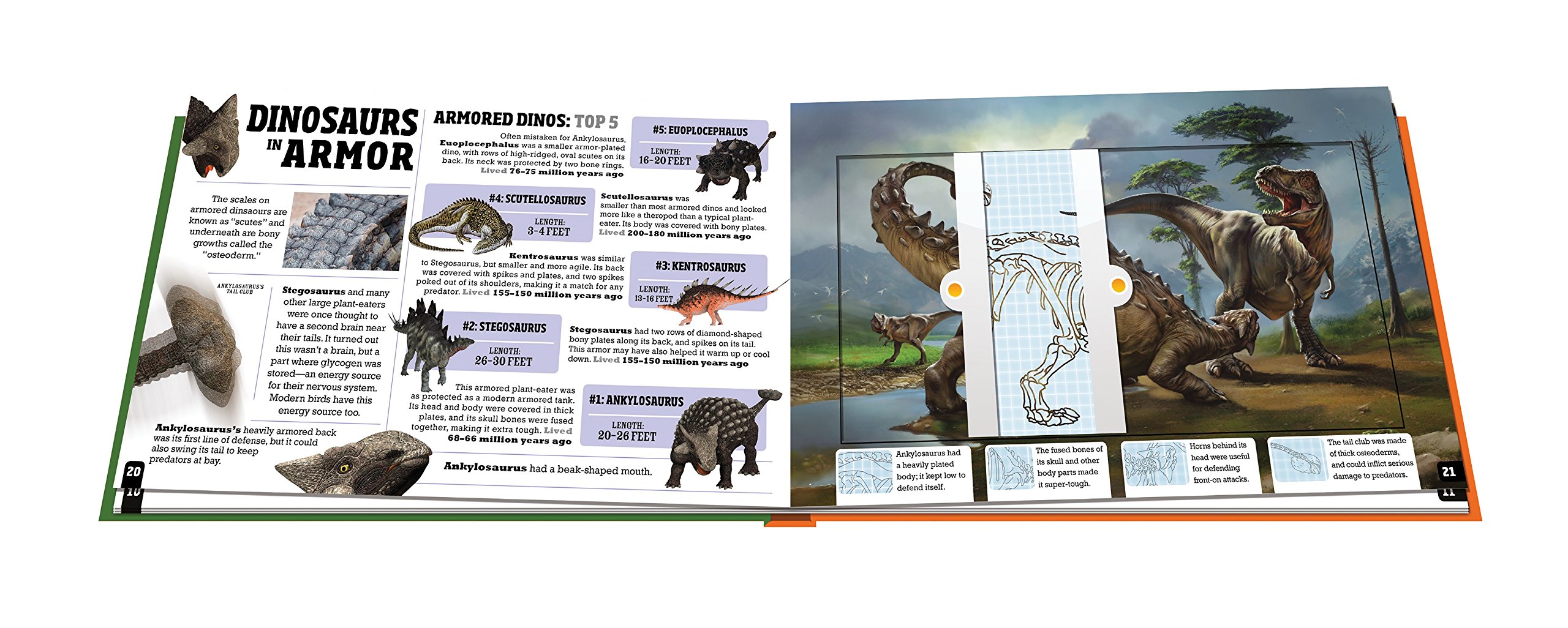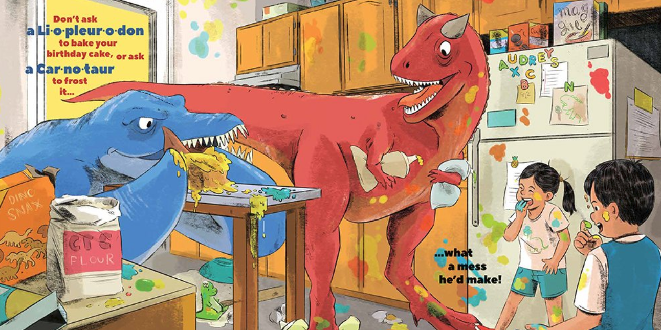 First, I would use the book to have students look at different characteristics of the dinosaurs introduced and why the characteristics are what they are.
