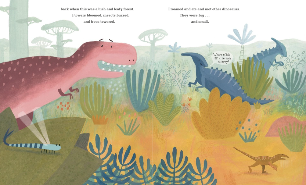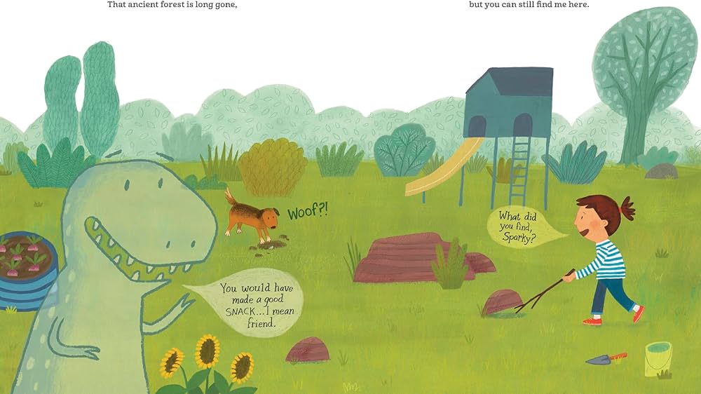 It’s been millions of years since this dinosaur has been so excited. There’s a girl—a curious girl—exploring the land right where he used to live!