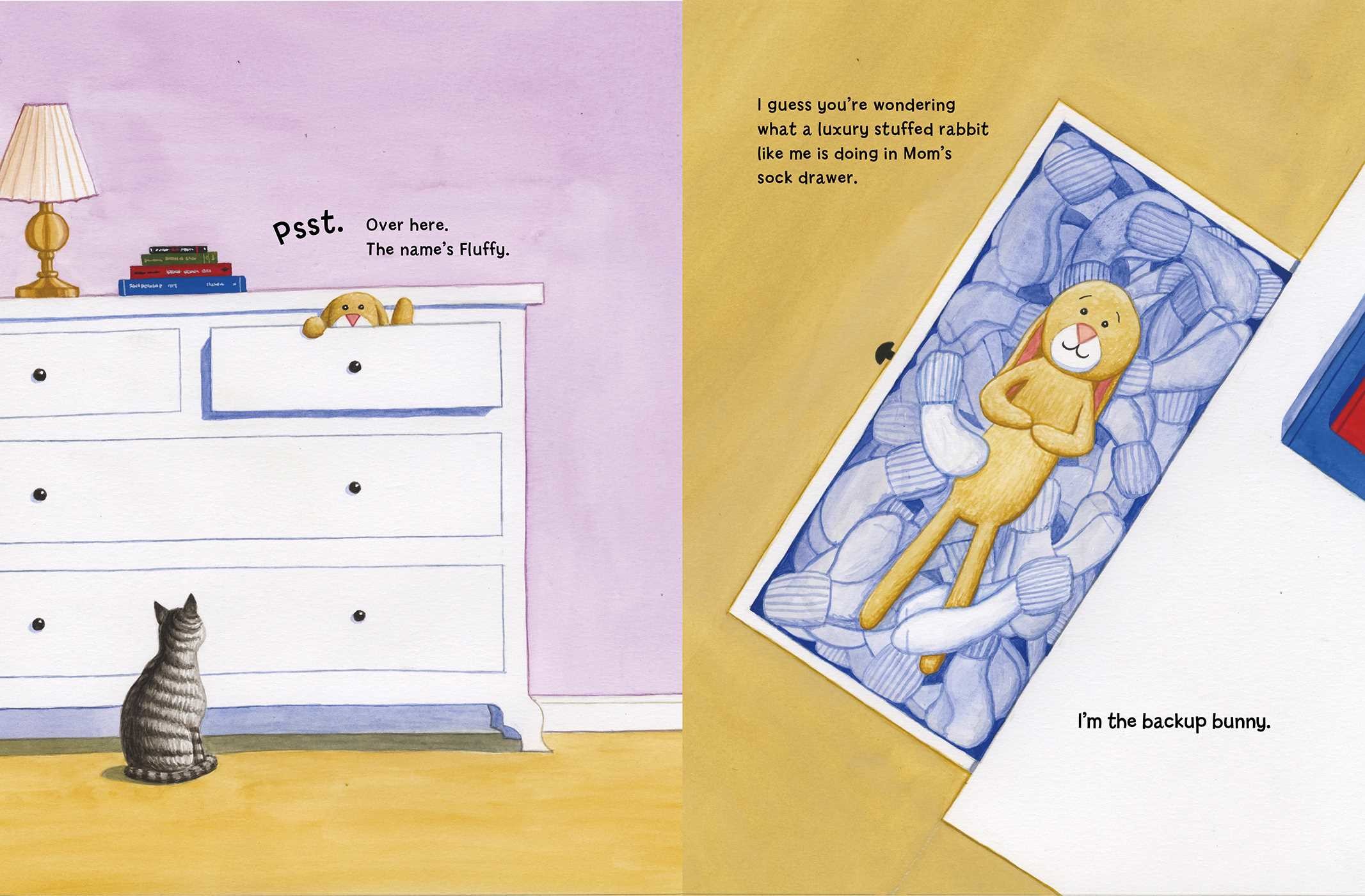 When Max loses his favorite toy—Bunny—his clever mom brings out the “backup bunny”—Fluffy—to save the day. Fluffy is thrilled to have the chance to play with Max, but is soon rejected by the observant child who notices that his ears are too new and perky. Can Fluffy find a way into his favorite boy’s heart?