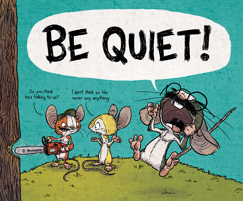 “I like how Bruce goes BRUGH, and Bruce always says bad things to the other animals, but Bruce isn’t bad. I like Be Quiet because I think is funny and I think the other one is funny too because the dinosaur eats her classmates.”