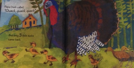 Although this book is a helpful, entertaining tool for teaching days of the week and numbers 1-5, my only concern is that readers might become worried or anxious thinking about the well-being of the ducks. At some points while reading, I was concentrated on where the ducks were, if they were still alive, and when they were going to return to their family, rather than enjoying the text.